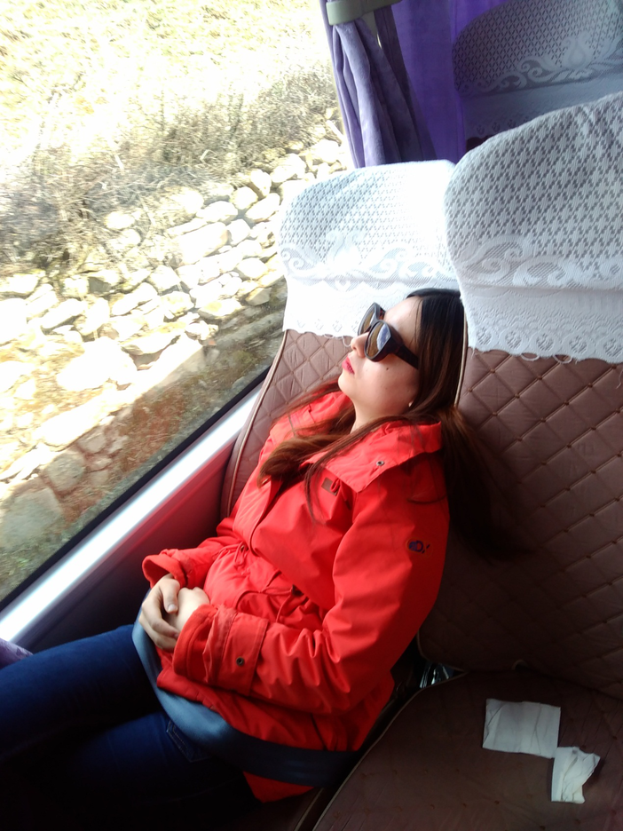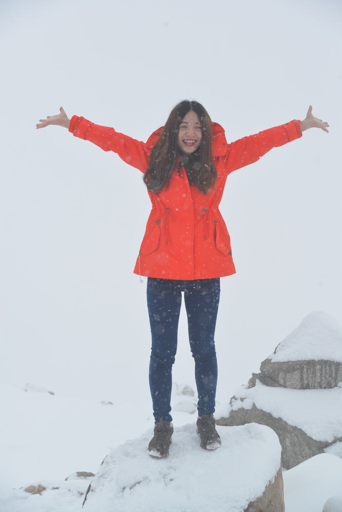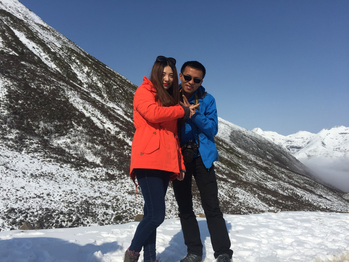 由于昨天的下雪,我们只有等到天气放晴后坐小面包车上子梅垭口观景