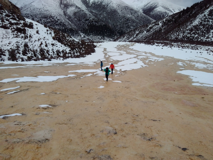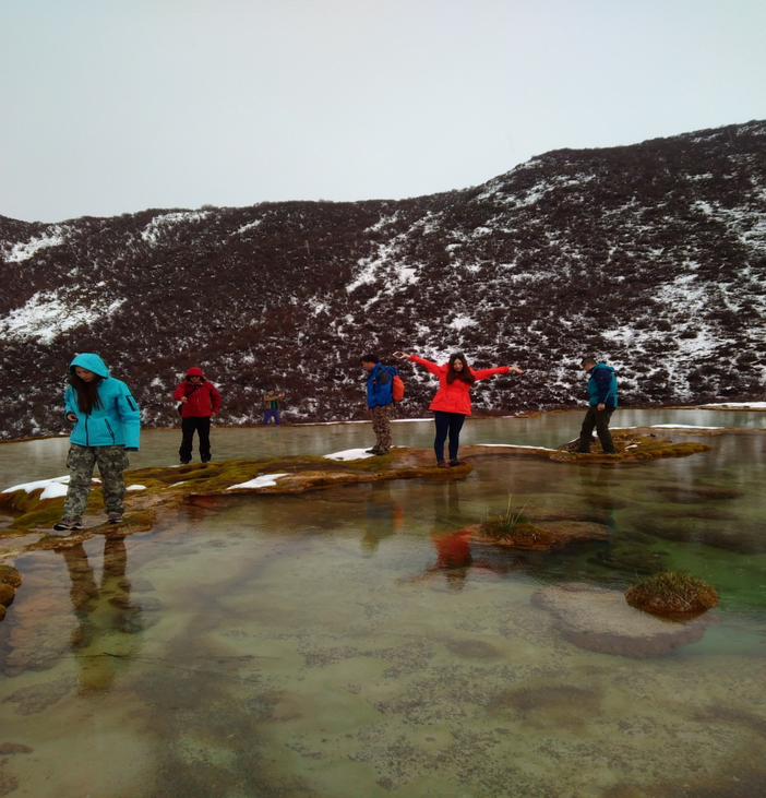 徒步上泉华滩的他们