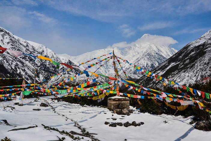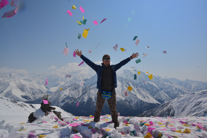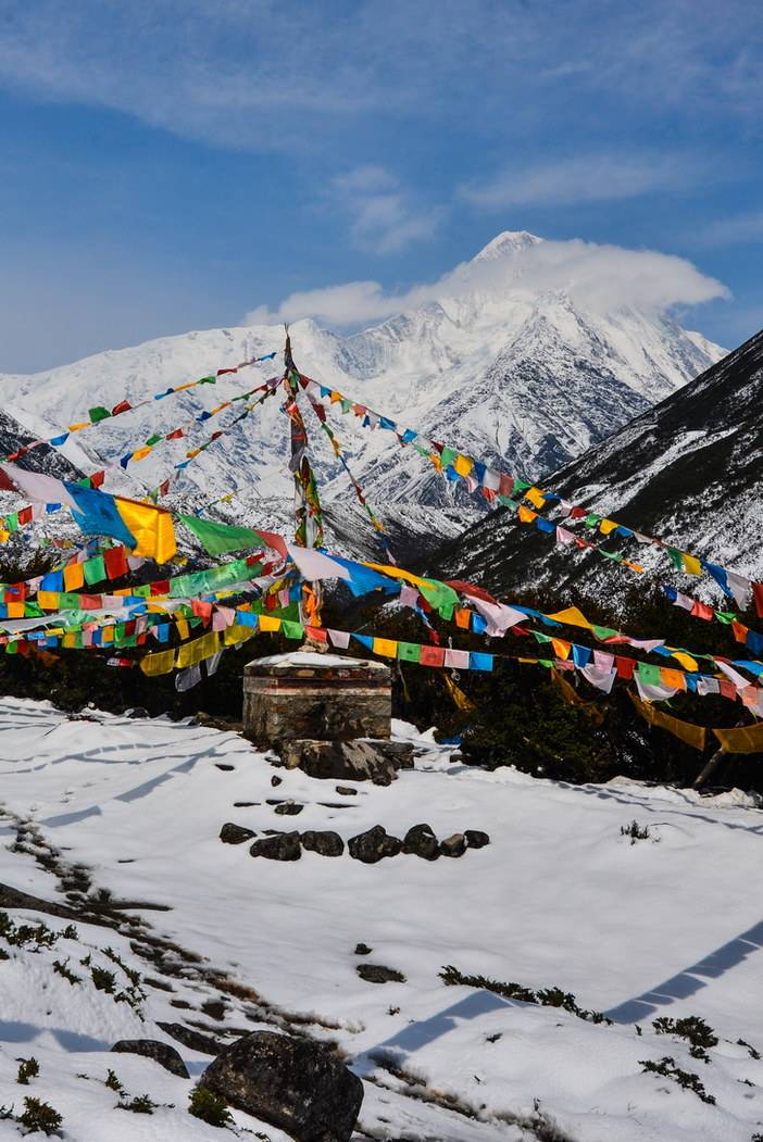 他们用龙达祈福看贡嘎全貌