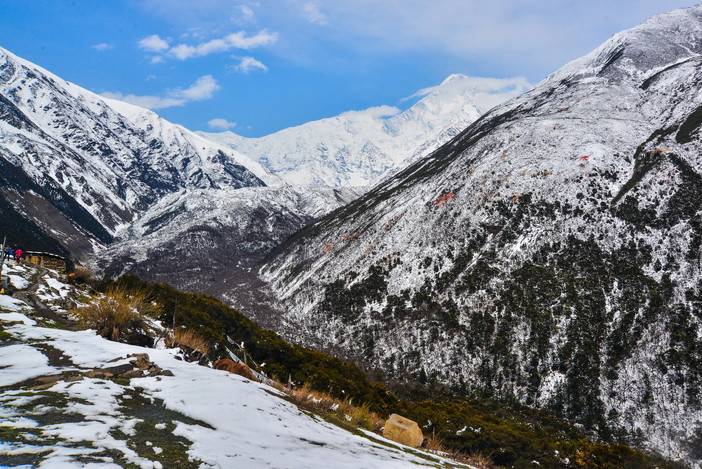 本来今天的行程是翻越子梅垭口,在子梅垭口观看贡嘎山的日落,但是由于雪太大了,加上我们到上木居村的时间太晚了,所以我们就只有今晚住宿上木居村,明天再一早乘车上子梅垭口观赏贡嘎山的晨景。