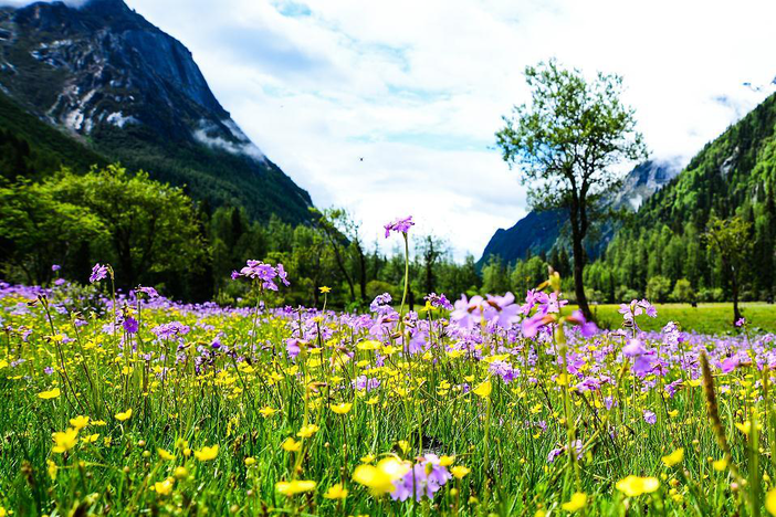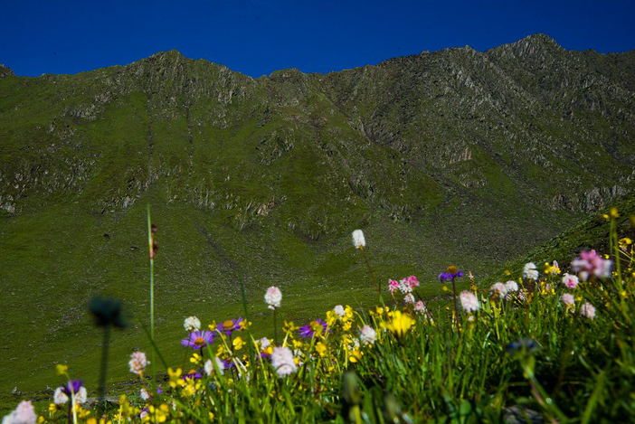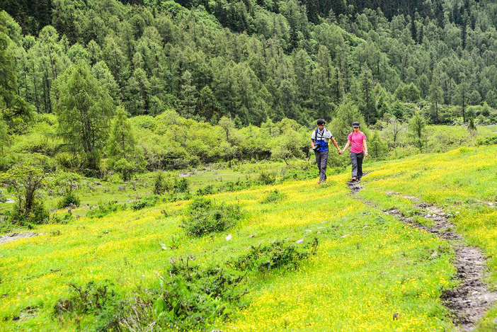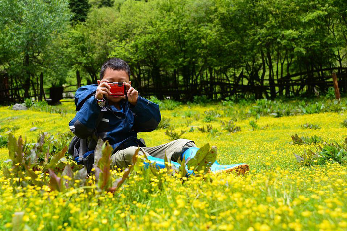 伴着高原上的清新空气,一朵朵鲜花迎着阳光绽放,一张张娇嫩的脸蛋在绿色的草甸上格外瞩目。花的馨香混合高山雪的清甜,在四姑娘山里,呼吸都让人心动。