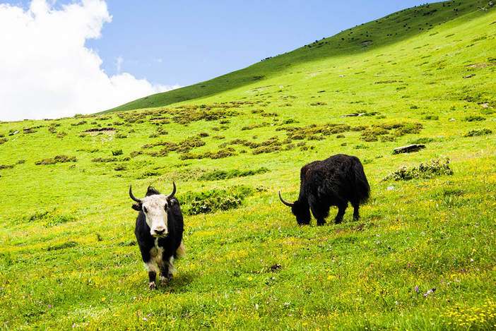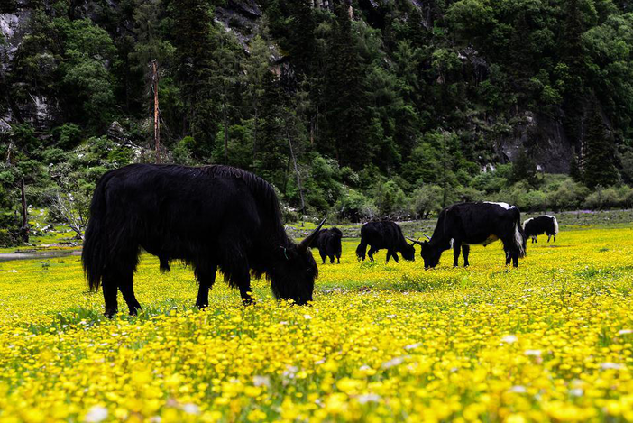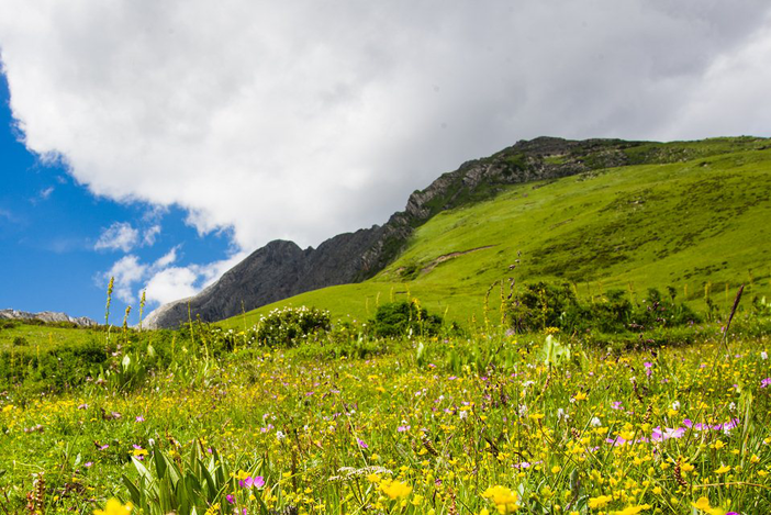 四姑娘山,这里平均海拔在3000米以上,这里的花种类繁多,很多现在还未命名,它们生长在离天堂最近的地方,每年 6-8月,是阿坝州花开繁盛的季节,充沛的水草、成群的牛羊、袅袅炊烟,构成最美的景色。