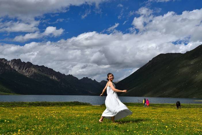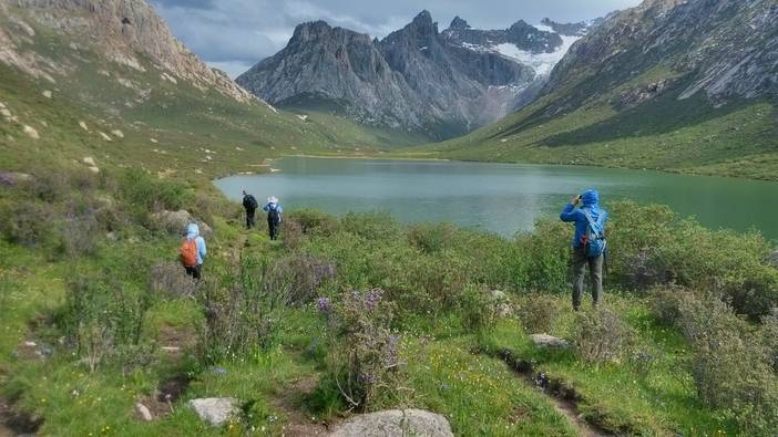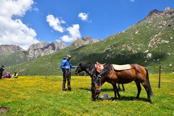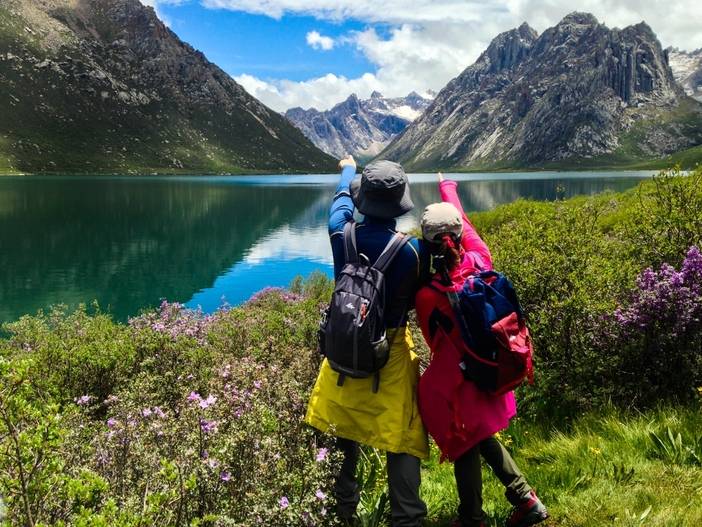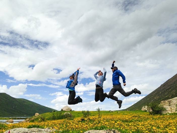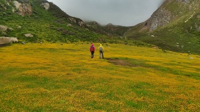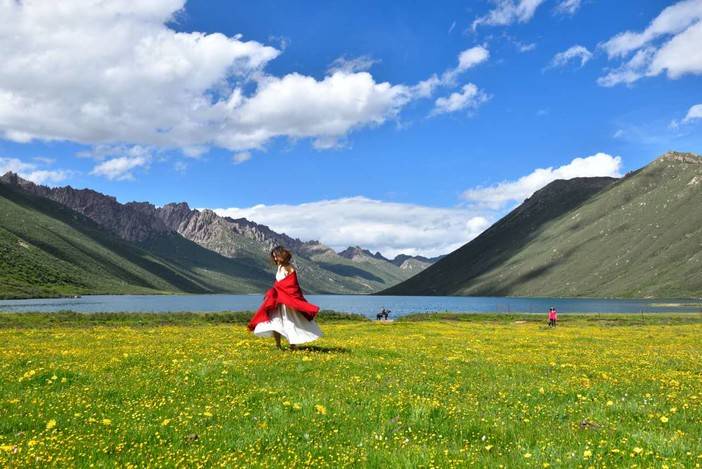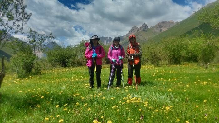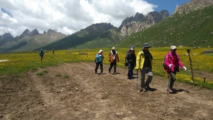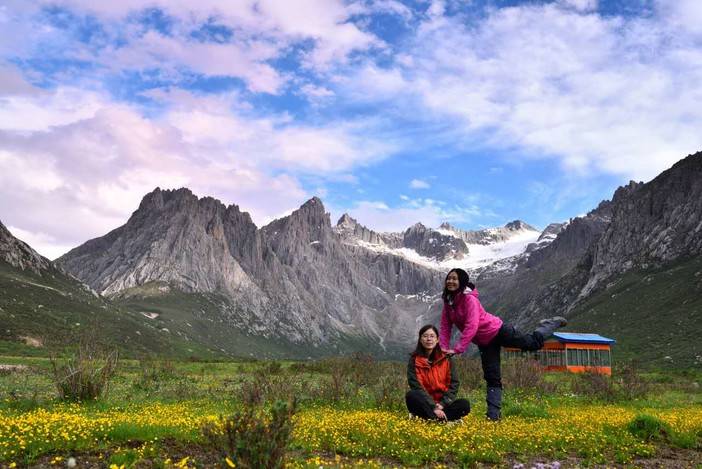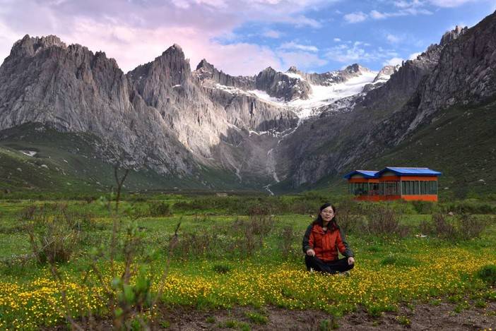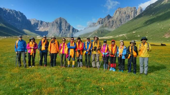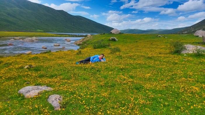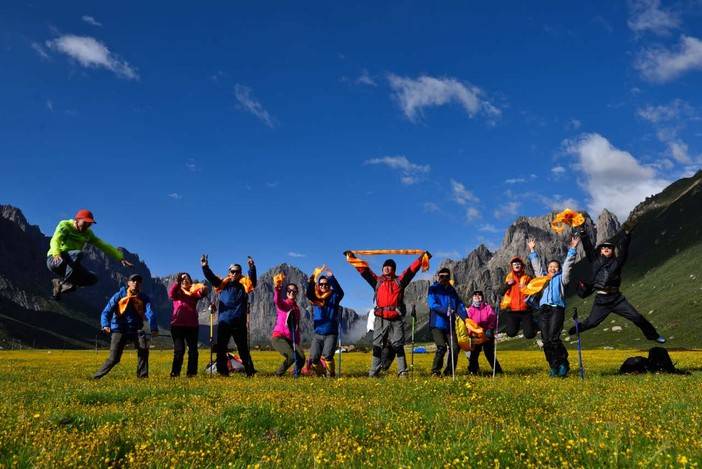 我们今天的行程很艰苦,要翻越4550米的垭口,我们一路走来,遇见了一片花海