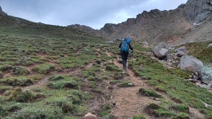 垭口的右侧有冰川,左侧是路,可以看见明显的马蹄印记。除了让人感觉命悬一线的陡坡,寒冷对我而言是更加致命的。实在冷得没办法,只能坚持徒步下行。