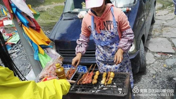 旁边在卖烧烤牦牛肉和土豆,当然要尝尝!