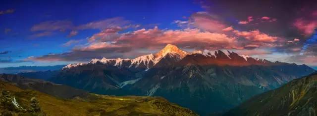 康定市贡嘎山乡境内的子梅垭口是观赏贡嘎雪山角度最端正的景观平台,是距离贡嘎最近的地方,离贡嘎主峰只有5公里,正对贡嘎主峰。站在子梅垭口,与贡嘎仿佛只隔着一条沟壑,与蜀山之王遥遥相望,是欣赏贡嘎的日落和日照金山,以及云海佛光的绝佳之地!