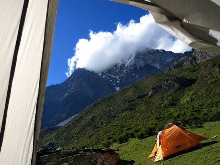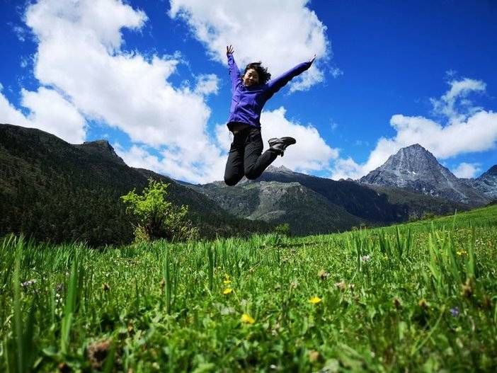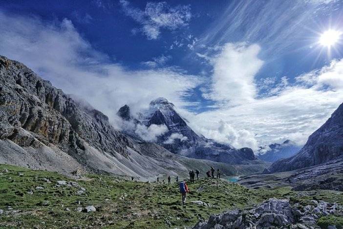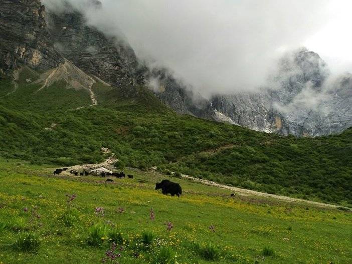 Day 3,藏别牛场-翻杂巴拉垭口-新果牛场, 真正的挑战开始,今天要翻越海拔4800米的扎巴拉垭口,在4000以上海拔一天提升600米,并且要徒步15公里以上,对体能和意志力是极大的挑战,还好天气依然给力,从早上的阴天变成了大晴天,风光依旧无敌,中间路过央迈勇中间的佛塔,佛塔下满是朝圣者的供奉,令人感叹。下午3点多抵达央迈勇脚下的营地