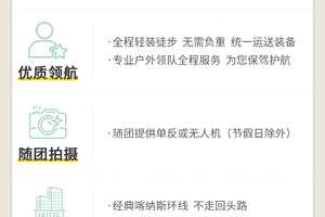3、单房差:单人出行则安排拼房,若未拼到,则需要补单房差,详情请咨询客服(提前7天报名保证拼房,不用补自然单房差);