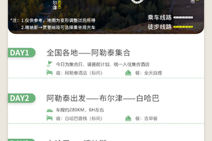 如果时间有限,不能直飞阿勒泰,可以乘坐集合当天的火车乌鲁木齐--阿勒泰,可在次日早上10点之前到达阿勒泰酒店集合;收拾完成之后与大部队同时出发。