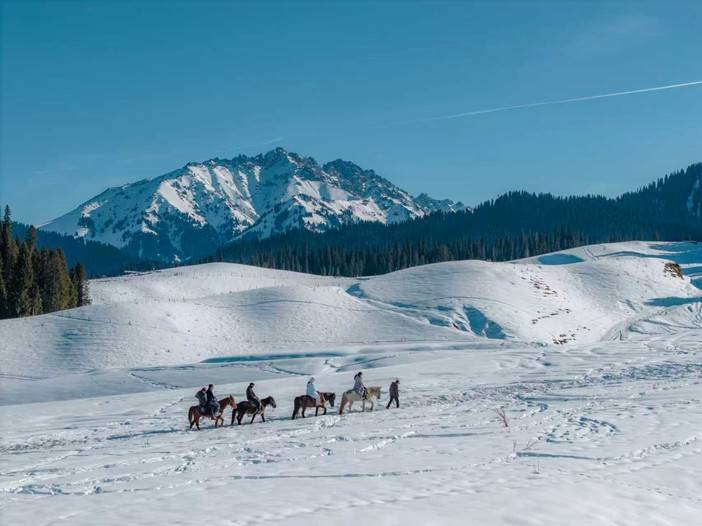 早餐后从昭苏县出发,踏入库尔德宁,仿佛进入了一个童话般的冰雪王国,银装素裹的森林,每一棵树都像是被大自然精心雕琢的艺术品,而骑马穿越这片森林,更是一种无与伦比的体验。行驶在这样的道路上,仿佛能闻到空气中弥漫的清新味道。这是一种远离城市喧嚣,亲近自然的美好感觉。离开库尔德宁,前往新源县办理入住。