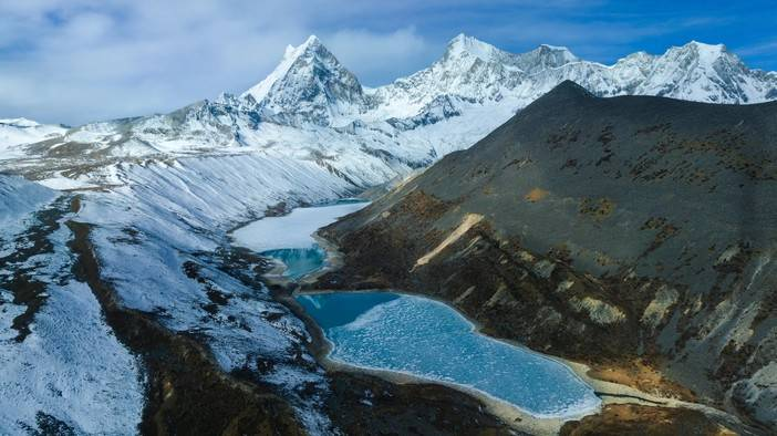 5)11月-次年2月属于冬季,天气稳定,偶尔下雪,是看日照金山和星空最佳的时候,同时沿途的湖泊会结冰,也是看蓝冰的时候。